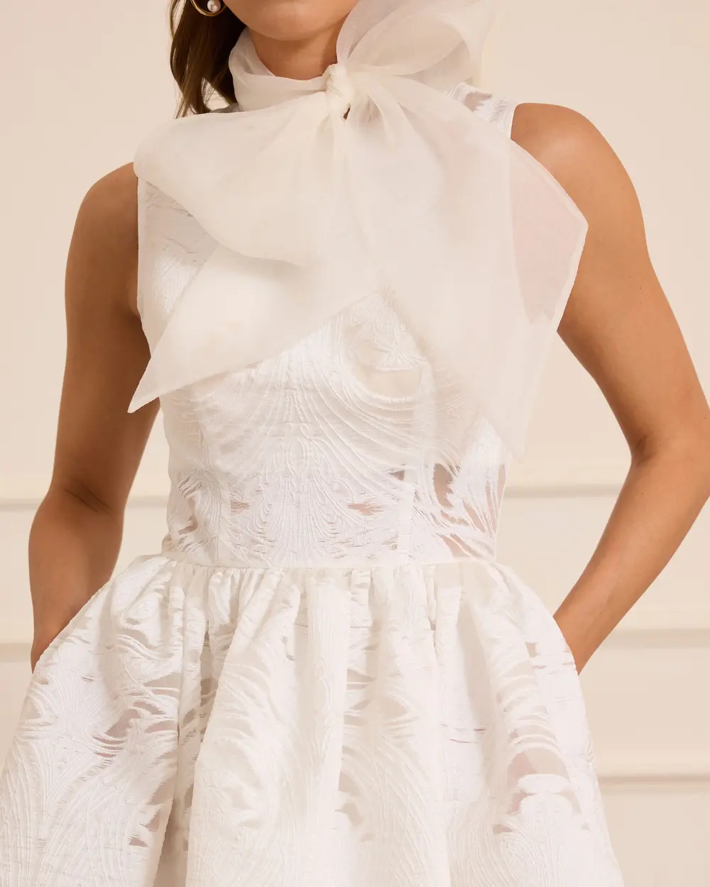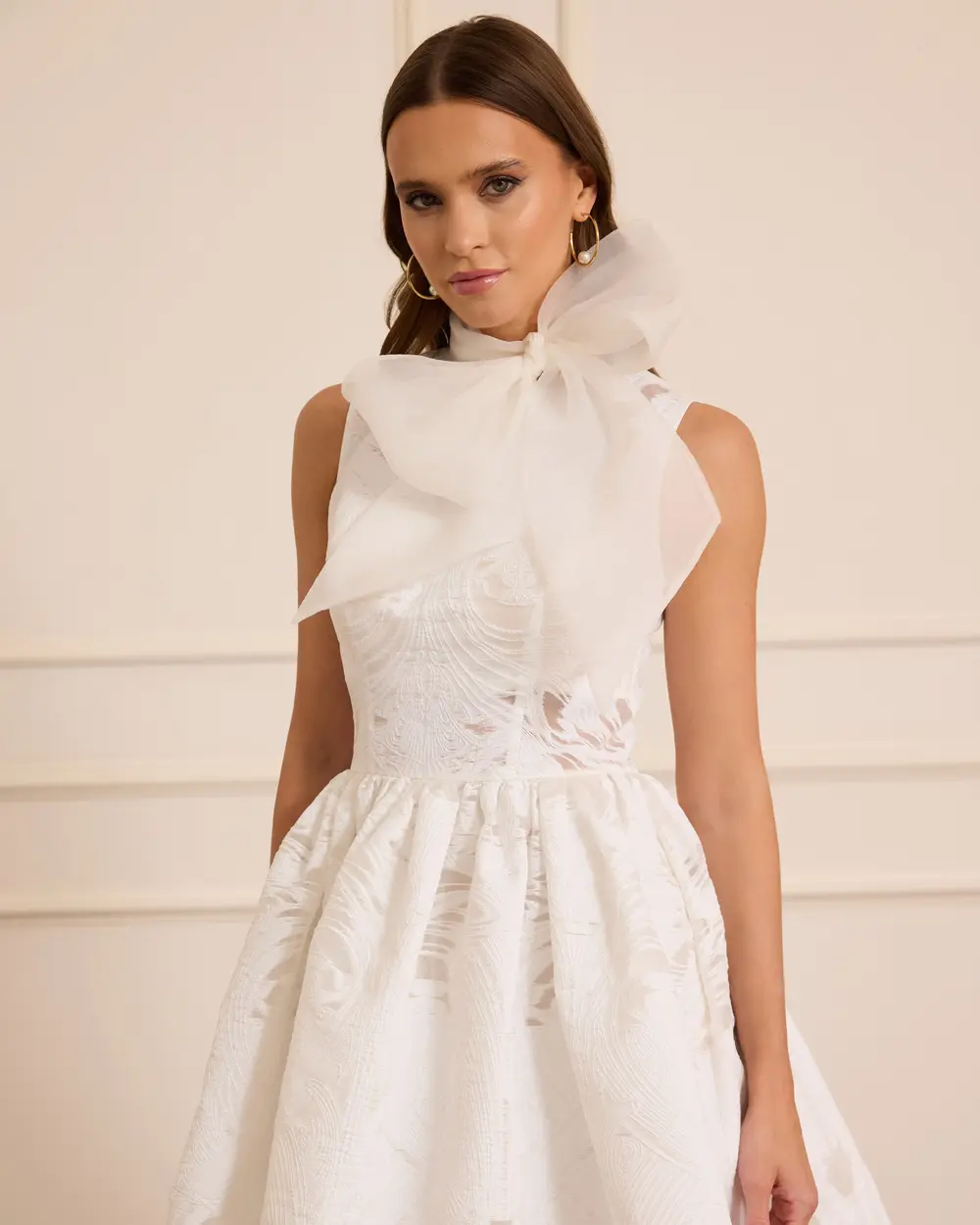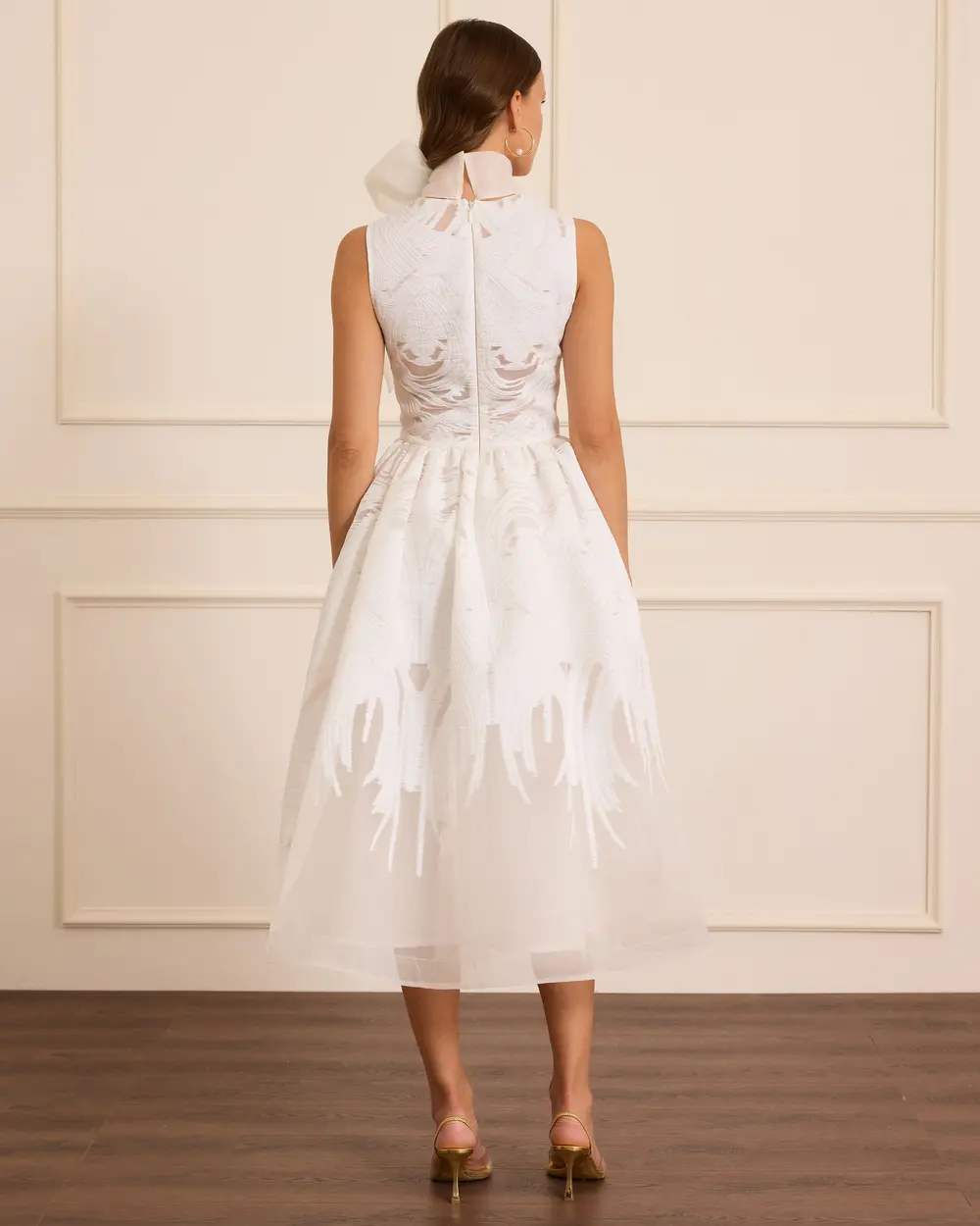 Çıkarılabilir Fular Detaylı Midi Kloş Abiye kolsuz kesimi ve zarif sıfır yaka detayı ile dikkat çekici bir şıklık sunar. Midi boyu ve jakar kumaşıyla hem zarif hem de göz alıcı olan bu abiye, davet, mezuniyet, düğün ve nişan gecelerinde fark yaratmak isteyenler için mükemmel bir seçimdir. Özel anlarınızı unutulmaz kılacak bu elbise ile tüm gözler üzerinizde olacak.